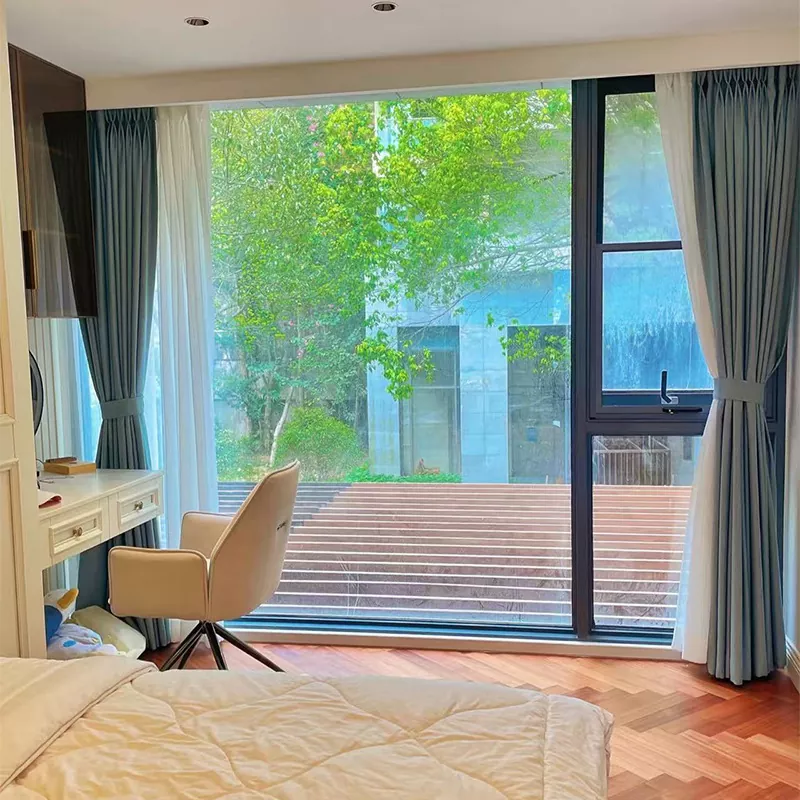 The design features an "anodized aluminum alloy frame + tempered glass" structure, with integrated corner assembly to distribute stress evenly, ensuring stability while maintaining a lightweight frame. Casement windows are equipped with external or concealed aluminum alloy hinges, opening to a 90° angle, and sealing tightly when closed. The sliding windows feature a silent track system that glides smoothly, reducing noise and saving space—ideal for small apartments.