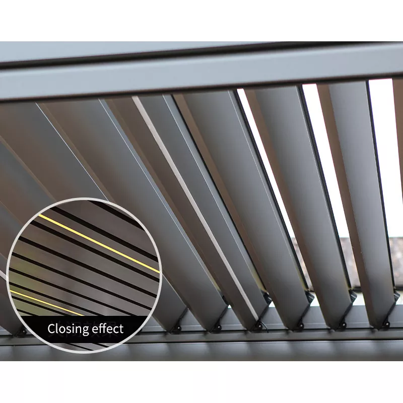 The core intelligent modules have undergone rigorous testing. The sunshade is driven by a silent motor, opening and closing smoothly without noise, and the stroke can be precisely adjusted; the wind and rain sensor can monitor rainfall and wind speed in real time, and automatically close the sunshade when the set threshold is reached to protect equipment safety; the lighting module supports switching between warm light, cold light and gradient modes to adapt to different scenario needs. Finished products need to pass multiple tests such as structural stability, intelligent control response speed, waterproof and weather resistance to ensure no profile deformation, no delay in intelligent commands, and qualified component waterproofing before leaving the factory, balancing standardized mass production and personalized intelligent control function customization.